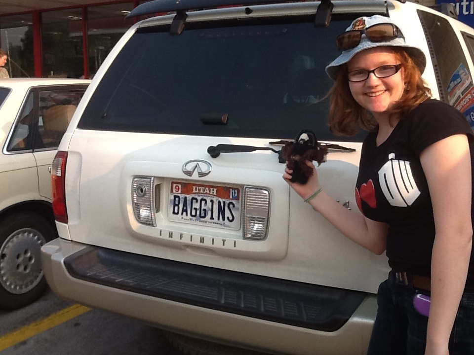 This car was parked next to us at 7-11! Please notice Melanie’s Gryffindor hat, Doctor Who t-shirt, and Thorin Oakenshield knitted nerd buddy.